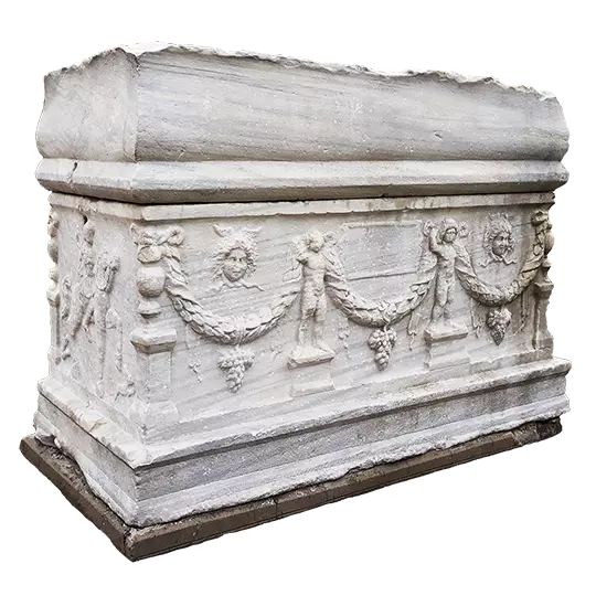 Prokoneski sarkofag sa girlandima,kraj IIveka, početak IIveka Drmno (iz starog Gimnaziskog muzeja), mermer